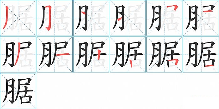 腒是左右结构,腒的部首是“月”,部外笔画8画,总笔画12画,腒的笔画顺序是“撇、横折钩、横、横、横折、横、撇、横、竖、竖、横折、横”。看看“腒”字什么意思 >>