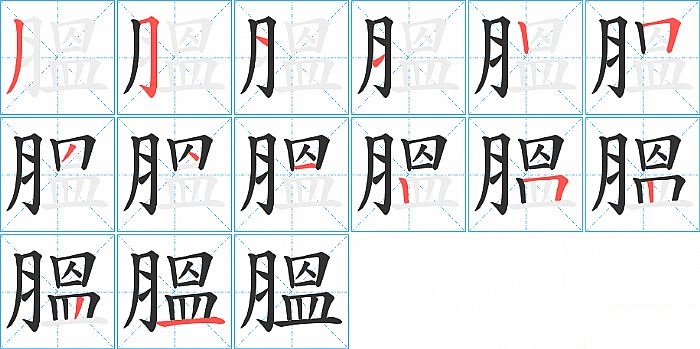 膃是左右结构,膃的部首是“月”,部外笔画10画,总笔画14画,膃的笔画顺序是“撇、横折钩、横、横、竖、横折、撇、点、横、竖、横折、竖、竖、横”。看看“膃”字什么意思 >>