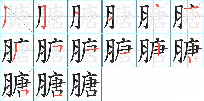 膅是左右结构,膅的部首是“月”,部外笔画10画,总笔画14画,膅的笔画顺序是“撇、横折钩、横、横、点、横、撇、横折、横、横、竖、竖、横折、横”。看看“膅”字什么意思 >>