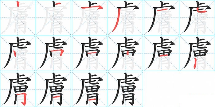 膚是左上包围结构,膚的部首是“月”,部外笔画11画,总笔画15画,膚的笔画顺序是“竖、横、横撇/横钩、撇、横、竖弯钩、竖、横折、横、竖、横、竖、横折钩、横、横”。看看“膚”字什么意思 >>