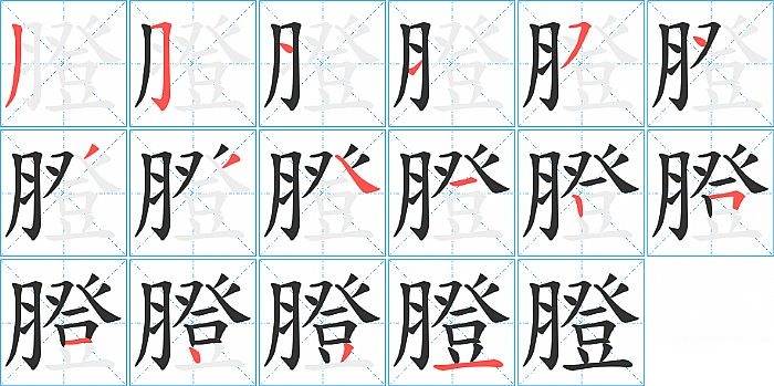 膯是左右结构,膯的部首是“月”,部外笔画12画,总笔画16画,膯的笔画顺序是“撇、横折钩、横、横、横撇/横钩、点、撇、撇、捺、横、竖、横折、横、点、撇、横”。看看“膯”字什么意思 >>