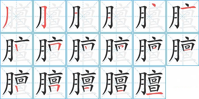 膻是左右结构,膻的部首是“月”,部外笔画13画,总笔画17画,膻的笔画顺序是“撇、横折钩、横、横、点、横、竖、横折、竖、横折、横、横、竖、横折、横、横、横”。看看“膻”字什么意思 >>