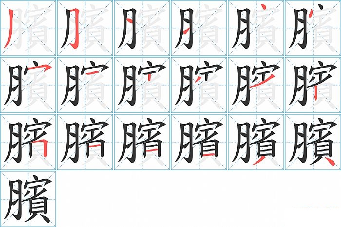 臏是左右结构,臏的部首是“月”,部外笔画14画,总笔画18画,臏的笔画顺序是“撇、横折钩、横、横、点、点、横撇/横钩、横、竖、撇、撇、竖、横折、横、横、横、撇、点”。看看“臏”字什么意思 >>