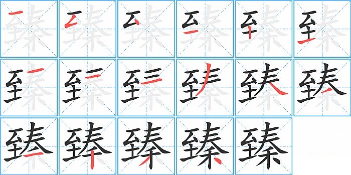 臻是左右结构,臻的部首是“至”,部外笔画10画,总笔画16画,臻的笔画顺序是“横、撇折、点、横、竖、提、横、横、横、撇、捺、撇、横、竖、撇、点”。看看“臻”字什么意思 >>