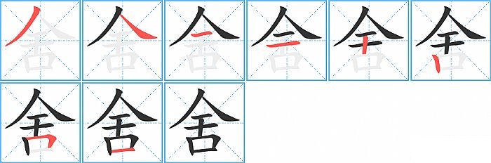 《舍》字的笔顺分步演示图(一笔一画写汉字)