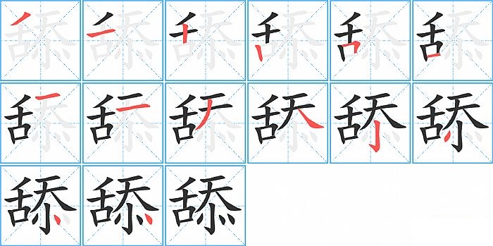 舔是左右结构,舔的部首是“舌”,部外笔画8画,总笔画14画,舔的笔画顺序是“撇、横、竖、竖、横折、横、横、横、撇、捺、竖钩、点、点、点”。看看“舔”字什么意思 >>