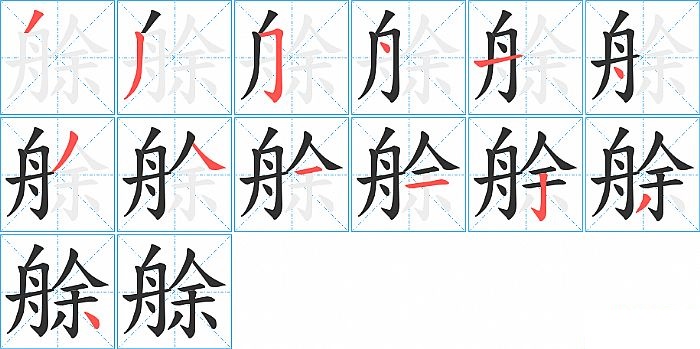 艅是左右结构,艅的部首是“舟”,部外笔画7画,总笔画13画,艅的笔画顺序是“撇、撇、横折钩、点、横、点、撇、捺、横、横、竖钩、撇、点”。看看“艅”字什么意思 >>
