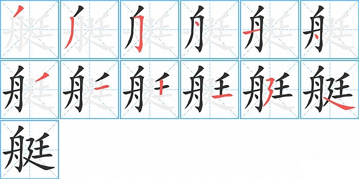 艇是左右结构,艇的部首是“舟”,部外笔画6画,总笔画12画,艇的笔画顺序是“撇、撇、横折钩、点、横、点、撇、横、竖、横、横折折撇、捺”。看看“艇”字什么意思 >>