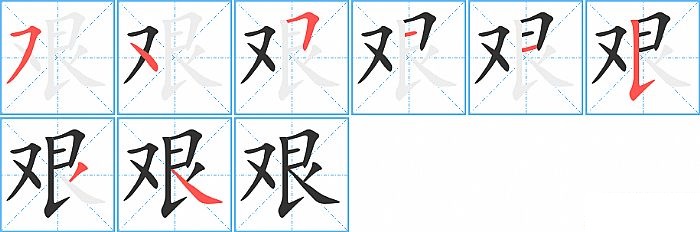 《艰》字的笔顺分步演示图(一笔一画写汉字)