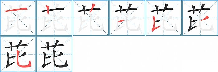 《芘》字的笔顺分步演示图(一笔一画写汉字)