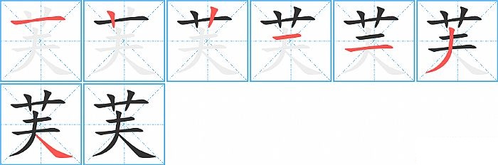 《芙》字的笔顺分步演示图(一笔一画写汉字)