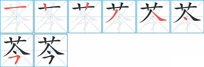《芩》字的笔顺分步演示图(一笔一画写汉字)