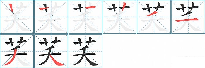 《芺》字的笔顺分步演示图(一笔一画写汉字)