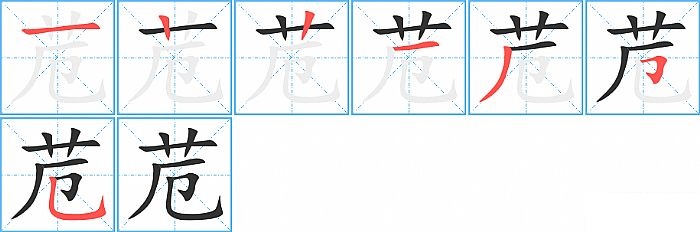 《苊》字的笔顺分步演示图(一笔一画写汉字)