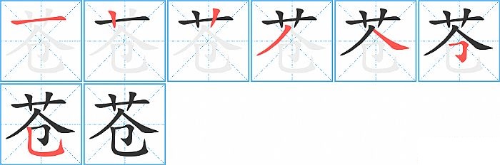 《苍》字的笔顺分步演示图(一笔一画写汉字)