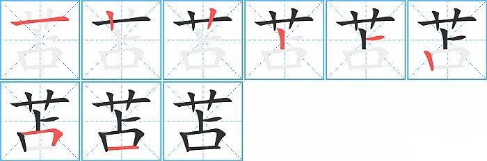 《苫》字的笔顺分步演示图(一笔一画写汉字)