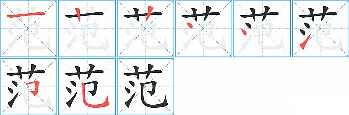 《范》字的笔顺分步演示图(一笔一画写汉字)