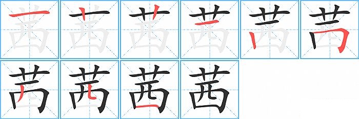 《茜》字的笔顺分步演示图(一笔一画写汉字)
