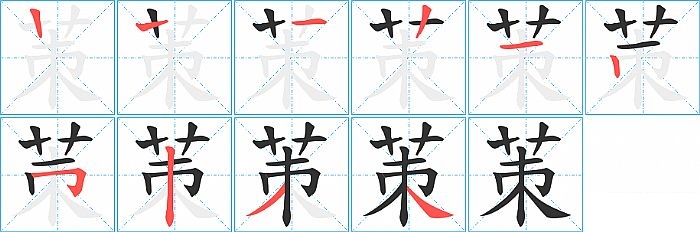 《茦》字的笔顺分步演示图(一笔一画写汉字)