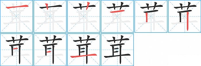 茸是上下结构,茸的部首是“艹”,部外笔画6画,总笔画9画,茸的笔画顺序是“横、竖、竖、横、竖、竖、横、横、横”。