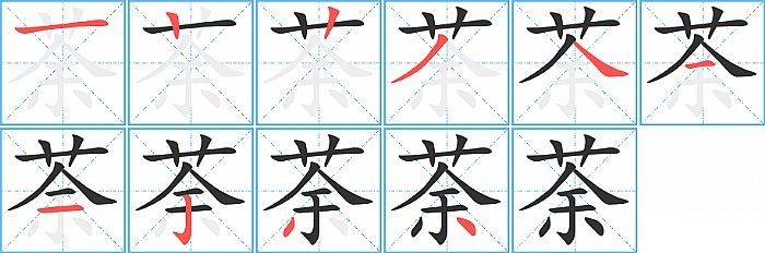 《荼》字的笔顺分步演示图(一笔一画写汉字)