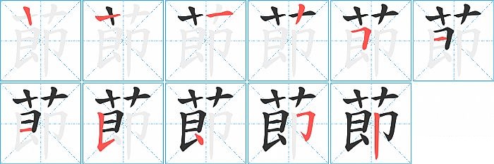 莭是上下结构,莭的部首是“艹”,部外笔画7画,总笔画10画,莭的笔画顺序是“横、竖、竖、横折、横、横、竖提、点、横折钩、竖”。看看“莭”字什么意思 >>