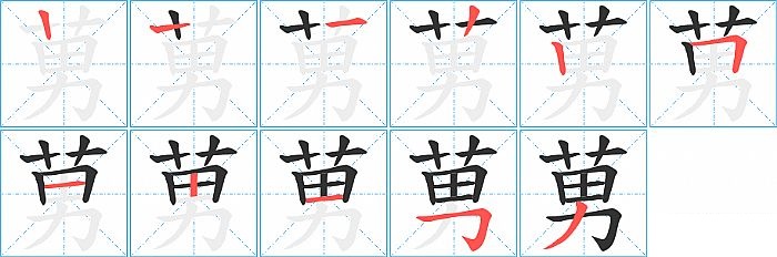 莮是上下结构,莮的部首是“艹”,部外笔画7画,总笔画10画,莮的笔画顺序是“横、竖、竖、竖、横折、横、竖、横、横折钩、撇”。看看“莮”字什么意思 >>