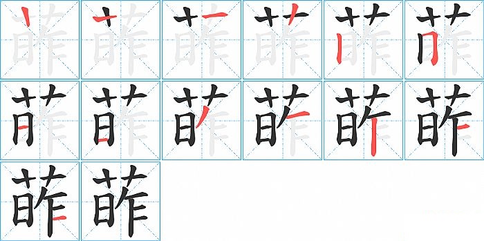 葃是上下结构,葃的部首是“艹”,部外笔画9画,总笔画12画,葃的笔画顺序是“横、竖、竖、竖、横折、横、横、撇、横、竖、横、横”。看看“葃”字什么意思 >>
