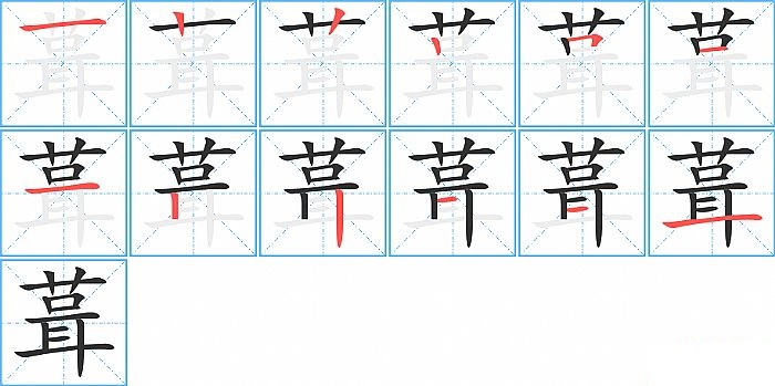 葺是上下结构,葺的部首是“艹”,部外笔画9画,总笔画12画,葺的笔画顺序是“横、竖、竖、竖、横折、横、横、竖、竖、横、横、横”。看看“葺”字什么意思 >>