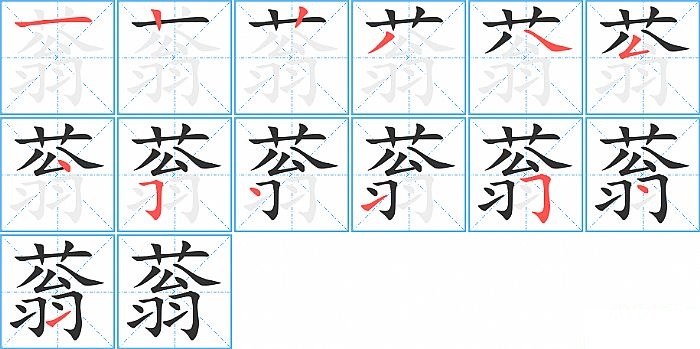 蓊是上下结构,蓊的部首是“艹”,部外笔画10画,总笔画13画,蓊的笔画顺序是“横、竖、竖、撇、捺、撇折、点、横折钩、点、提、横折钩、点、提”。看看“蓊”字什么意思 >>