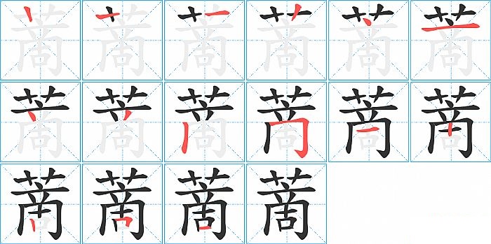 蔐是上下结构,蔐的部首是“艹”,部外笔画11画,总笔画14画,蔐的笔画顺序是“横、竖、竖、点、横、点、撇、竖、横折钩、横、竖、竖、横折、横”。看看“蔐”字什么意思 >>
