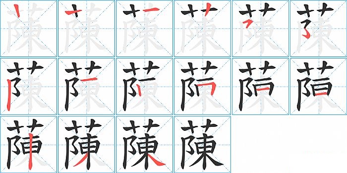蔯是上下结构,蔯的部首是“艹”,部外笔画10画,总笔画13画,蔯的笔画顺序是“横、竖、竖、横折折折钩/横撇弯钩、竖、横、竖、横折、横、横、竖、撇、捺”。看看“蔯”字什么意思 >>
