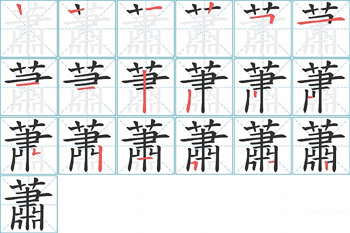 蕭是上下结构,蕭的部首是“艹”,部外笔画13画,总笔画16画,蕭的笔画顺序是“横、竖、竖、横折、横、横、竖、撇、竖、横、横、横折、竖折/竖弯、竖、横、竖”。看看“蕭”字什么意思 >>
