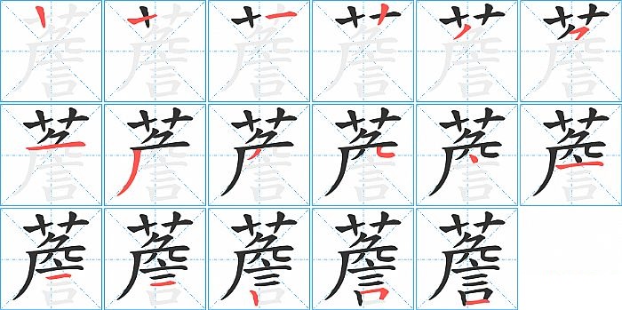 薝是上下结构,薝的部首是“艹”,部外笔画13画,总笔画16画,薝的笔画顺序是“横、竖、竖、撇、横撇/横钩、横、撇、撇、点、点、横、横、横、竖、横折、横”。看看“薝”字什么意思 >>
