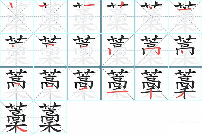 藳是上下结构,藳的部首是“艹”,部外笔画15画,总笔画18画,藳的笔画顺序是“横、竖、竖、点、横、竖、横折、横、竖、横折钩、竖、横折、横、撇、横、竖、撇、捺”。看看“藳”字什么意思 >>
