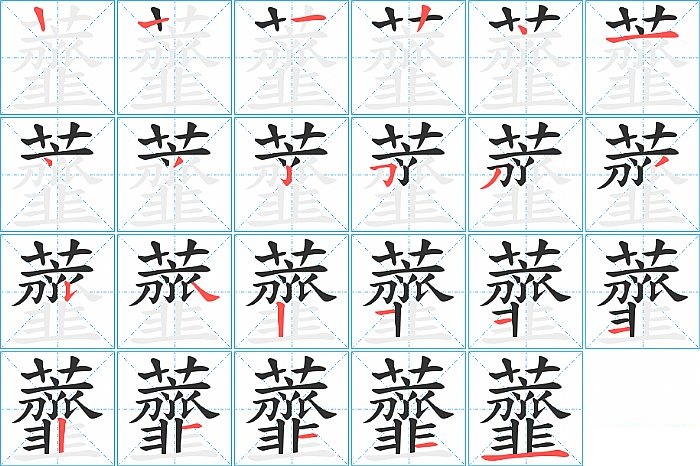 虀是上下结构,虀的部首是“艹”,部外笔画19画,总笔画22画,虀的笔画顺序是“横、竖、竖、点、横、点、撇、竖、横折钩、撇、撇、竖提、捺、竖、横、横、横、竖、横、横、横、横”。看看“虀”字什么意思 >>
