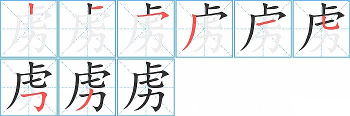 虏是半包围结构,虏的部首是“虍”,部外笔画2画,总笔画8画,虏的笔画顺序是“竖、横、横撇/横钩、撇、横、竖弯钩、横折钩、撇”。看看“虏”字什么意思 >>