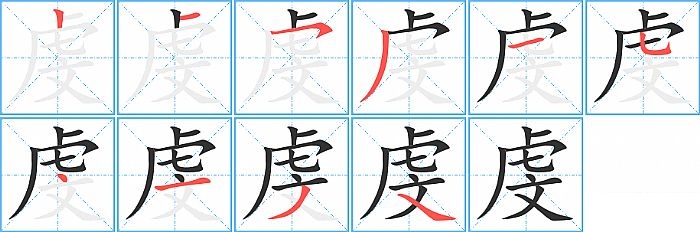 虔是半包围结构,虔的部首是“虍”,部外笔画4画,总笔画10画,虔的笔画顺序是“竖、横、横撇/横钩、撇、横、竖弯钩、点、横、撇、捺”。看看“虔”字什么意思 >>