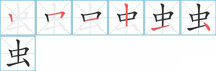 《虫》字的笔顺分步演示图(一笔一画写汉字)