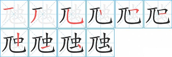 《虺》字的笔顺分步演示图(一笔一画写汉字)