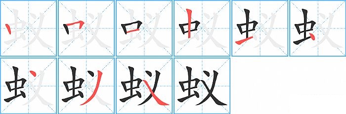 《蚁》字的笔顺分步演示图(一笔一画写汉字)