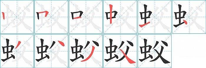 《蚥》字的笔顺分步演示图(一笔一画写汉字)