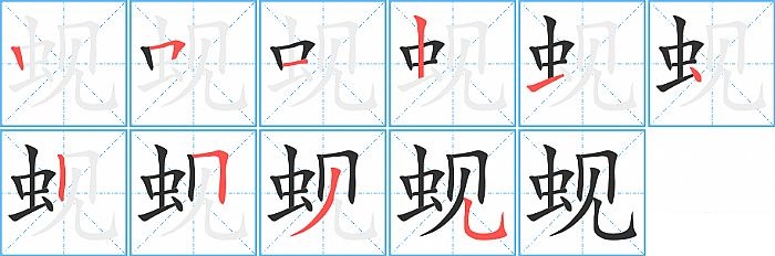 蚬是左右结构,蚬的部首是“虫”,部外笔画4画,总笔画10画,蚬的笔画顺序是“竖、横折、横、竖、横、点、竖、横折、撇、竖弯钩”。看看“蚬”字什么意思 >>