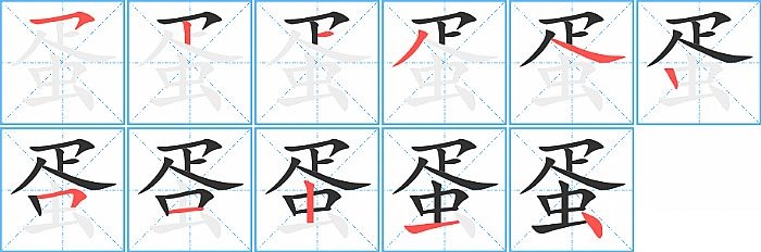 蛋是上下结构,蛋的部首是“虫”,部外笔画5画,总笔画11画,蛋的笔画顺序是“横撇/横钩、竖、横、撇、捺、竖、横折、横、竖、横、点”。看看“蛋”字什么意思 >>