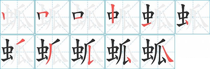 蛌是左右结构,蛌的部首是“虫”,部外笔画5画,总笔画11画,蛌的笔画顺序是“竖、横折、横、竖、横、点、撇、撇、竖提、点、捺”。看看“蛌”字什么意思 >>