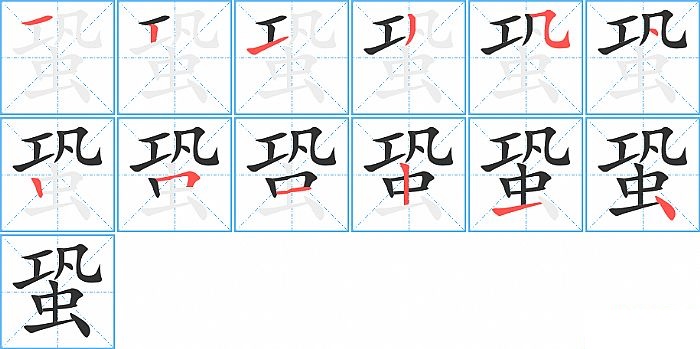 蛩是上下结构,蛩的部首是“虫”,部外笔画6画,总笔画12画,蛩的笔画顺序是“横、竖、提、撇、横折弯钩/横斜钩、点、竖、横折、横、竖、横、点”。看看“蛩”字什么意思 >>