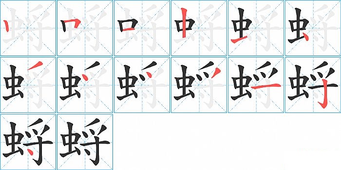 蛶是左右结构,蛶的部首是“虫”,部外笔画7画,总笔画13画,蛶的笔画顺序是“竖、横折、横、竖、横、点、撇、点、点、撇、横、竖钩、点”。看看“蛶”字什么意思 >>