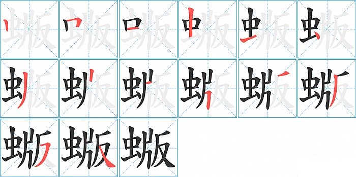 蝂是左右结构,蝂的部首是“虫”,部外笔画8画,总笔画14画,蝂的笔画顺序是“竖、横折、横、竖、横、点、撇、竖、横、横折、撇、撇、横撇/横钩、捺”。看看“蝂”字什么意思 >>