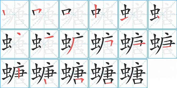 螗是左右结构,螗的部首是“虫”,部外笔画10画,总笔画16画,螗的笔画顺序是“竖、横折、横、竖、横、点、点、横、撇、横折、横、横、竖、竖、横折、横”。看看“螗”字什么意思 >>