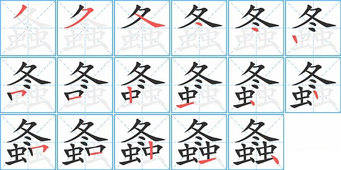 螽是上下结构,螽的部首是“虫”,部外笔画11画,总笔画17画,螽的笔画顺序是“撇、横撇/横钩、捺、点、点、竖、横折、横、竖、横、点、竖、横折、横、竖、横、点”。看看“螽”字什么意思 >>
